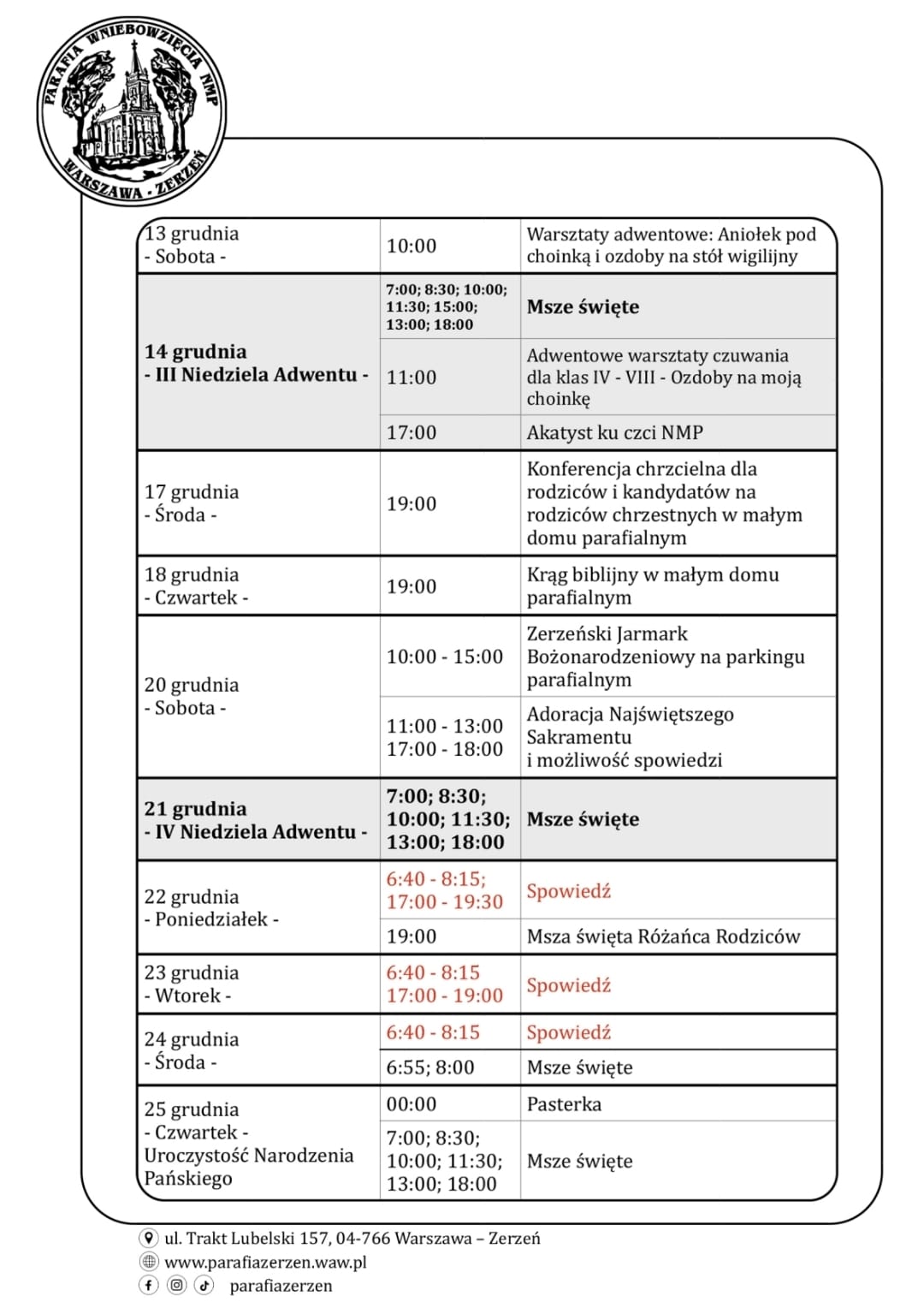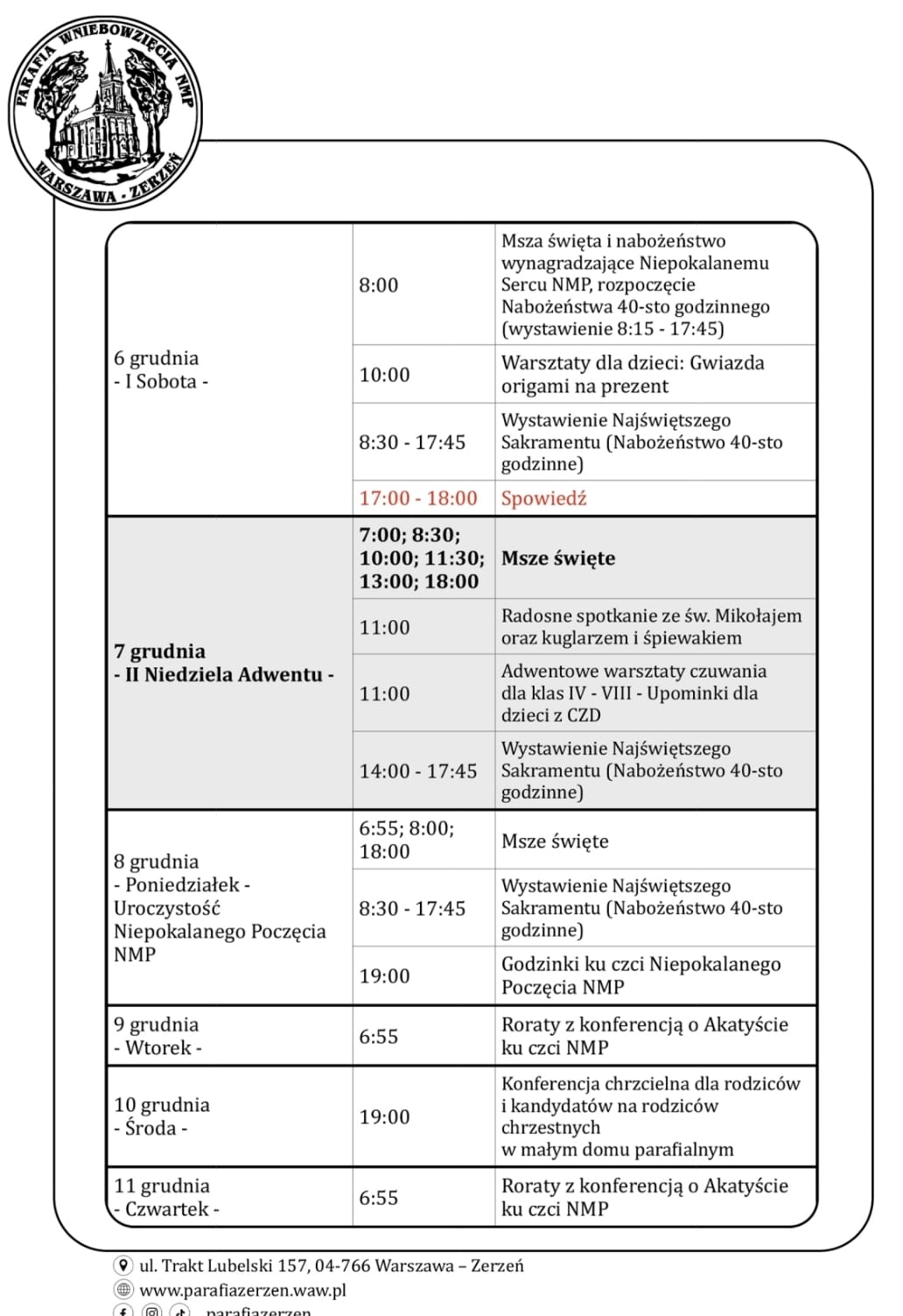 a w ostatnią środę miesiąca godz. 7:45.